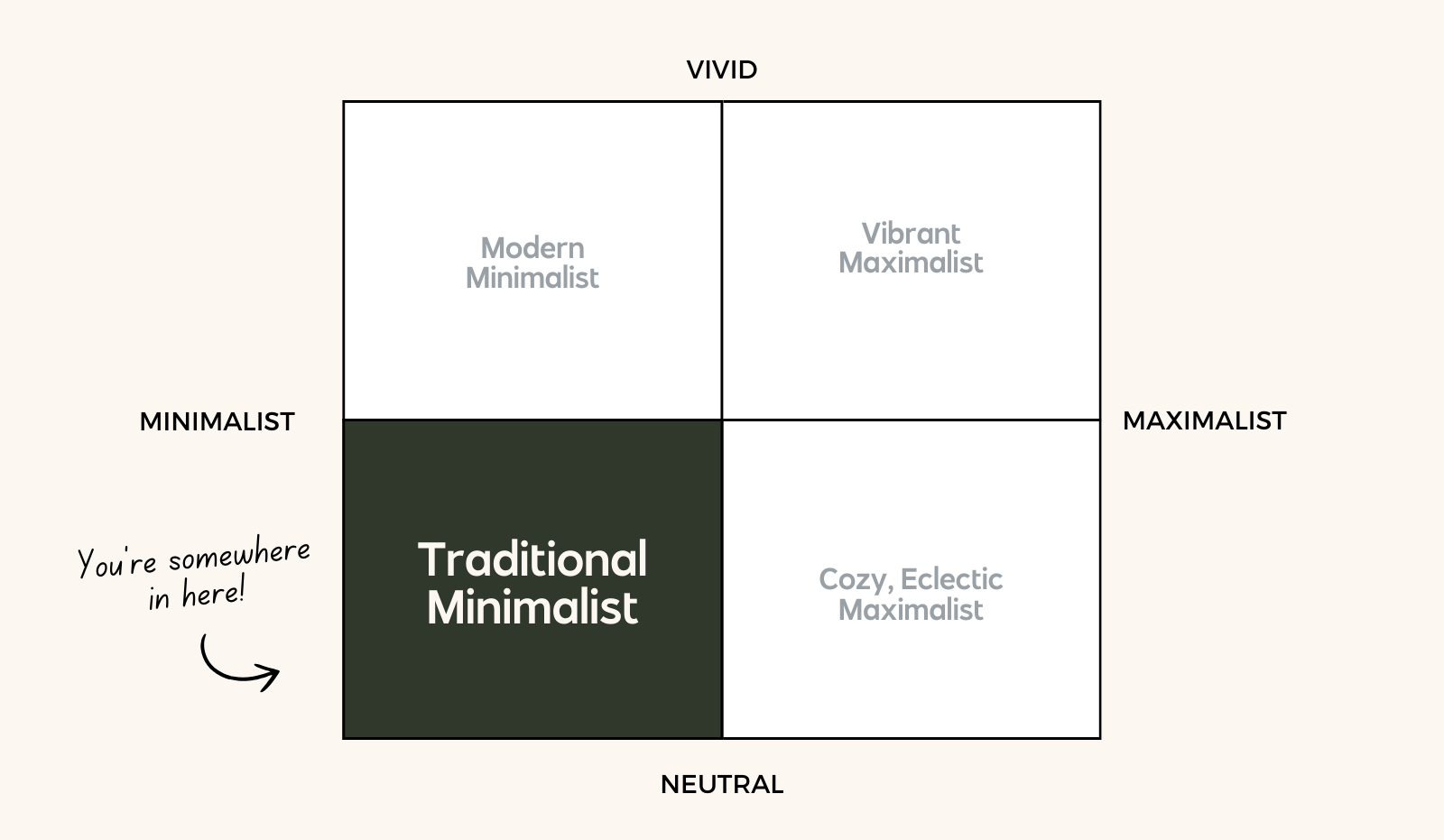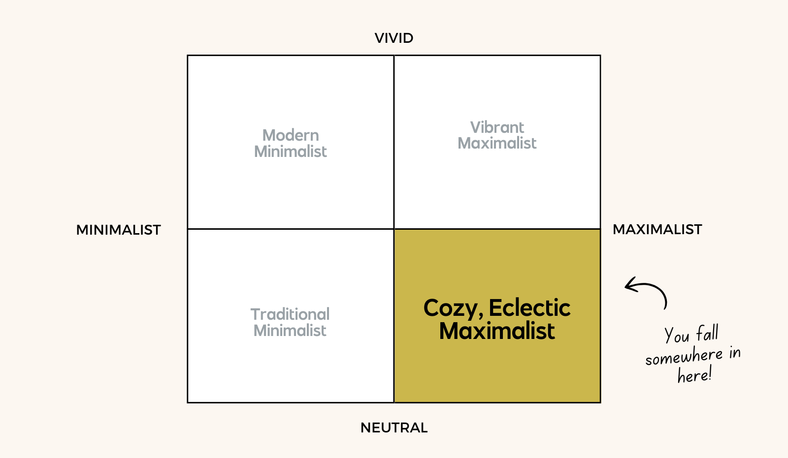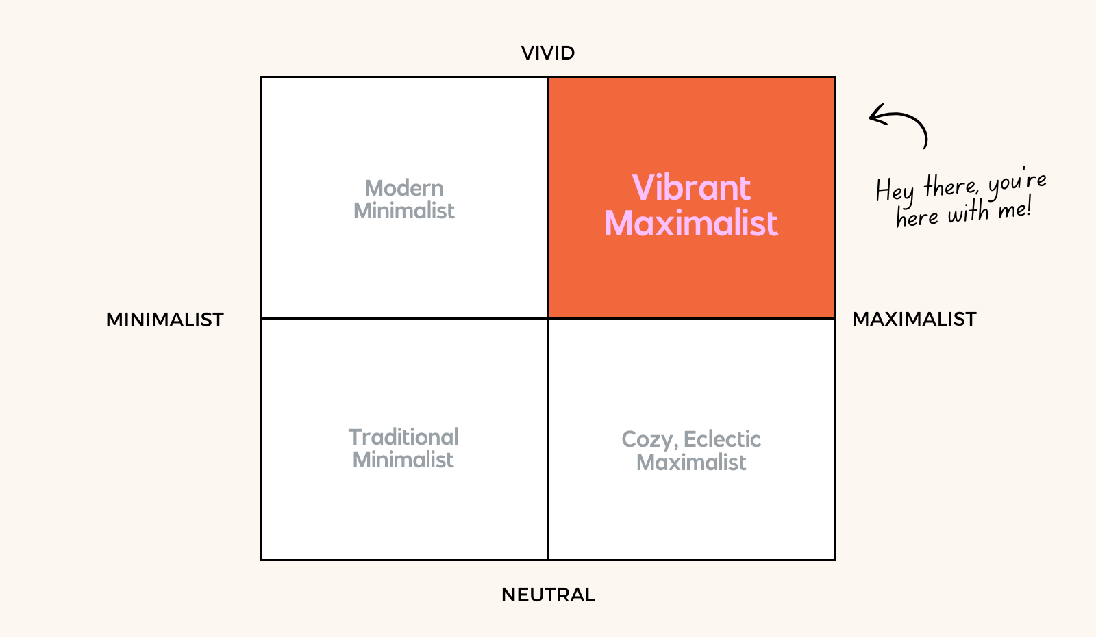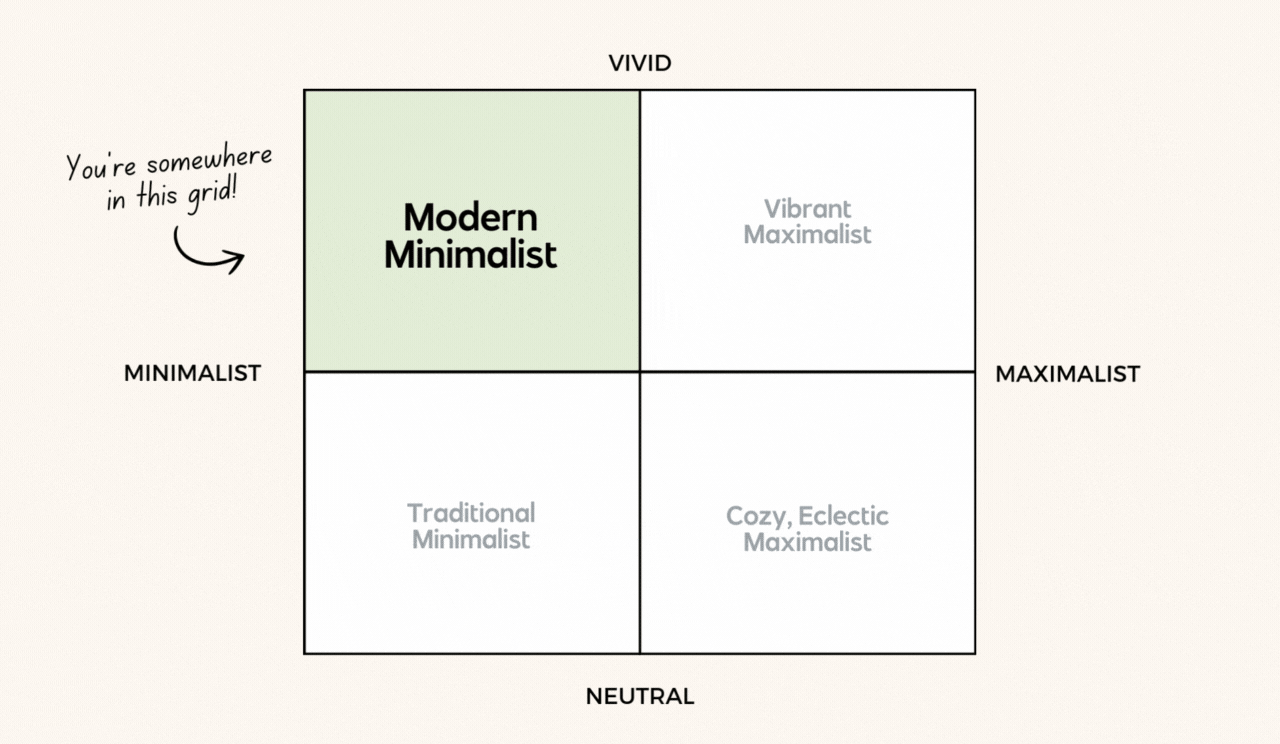 By combining vibrant, neutral, maximalist, and minimalist, you get four quadrants that can help guide brand decisions!