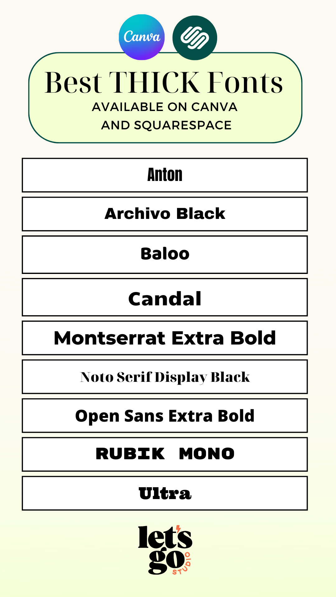 My favorite chunky funky monkey fonts on both Canva and Squarespace: