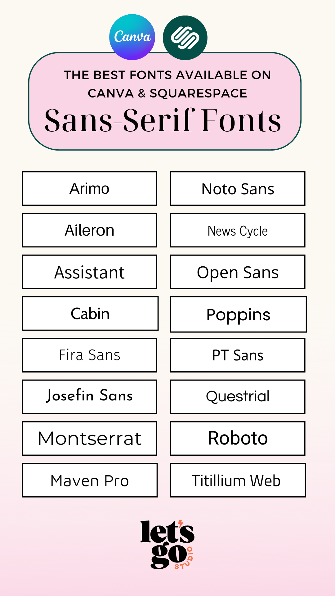 My favorite Sans-serif Fonts on both Canva and Squarespace