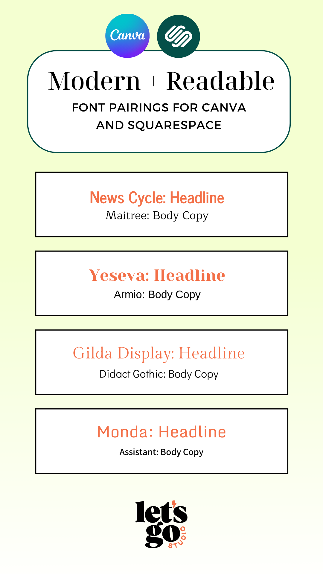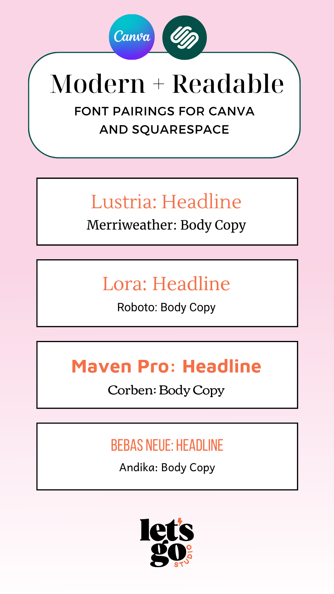 Fonts Available in Canva and Squarespace + Best Font Pairings