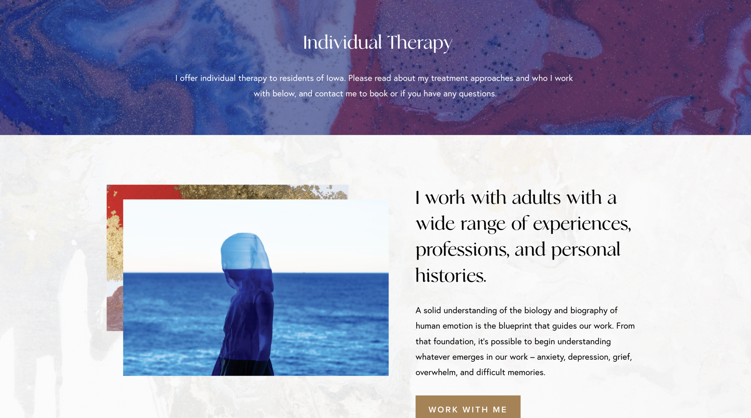 JLO needed a calm yet riveting website to reflect her years of experience. This Therapy Website Design was a more unique one that I loved working on!