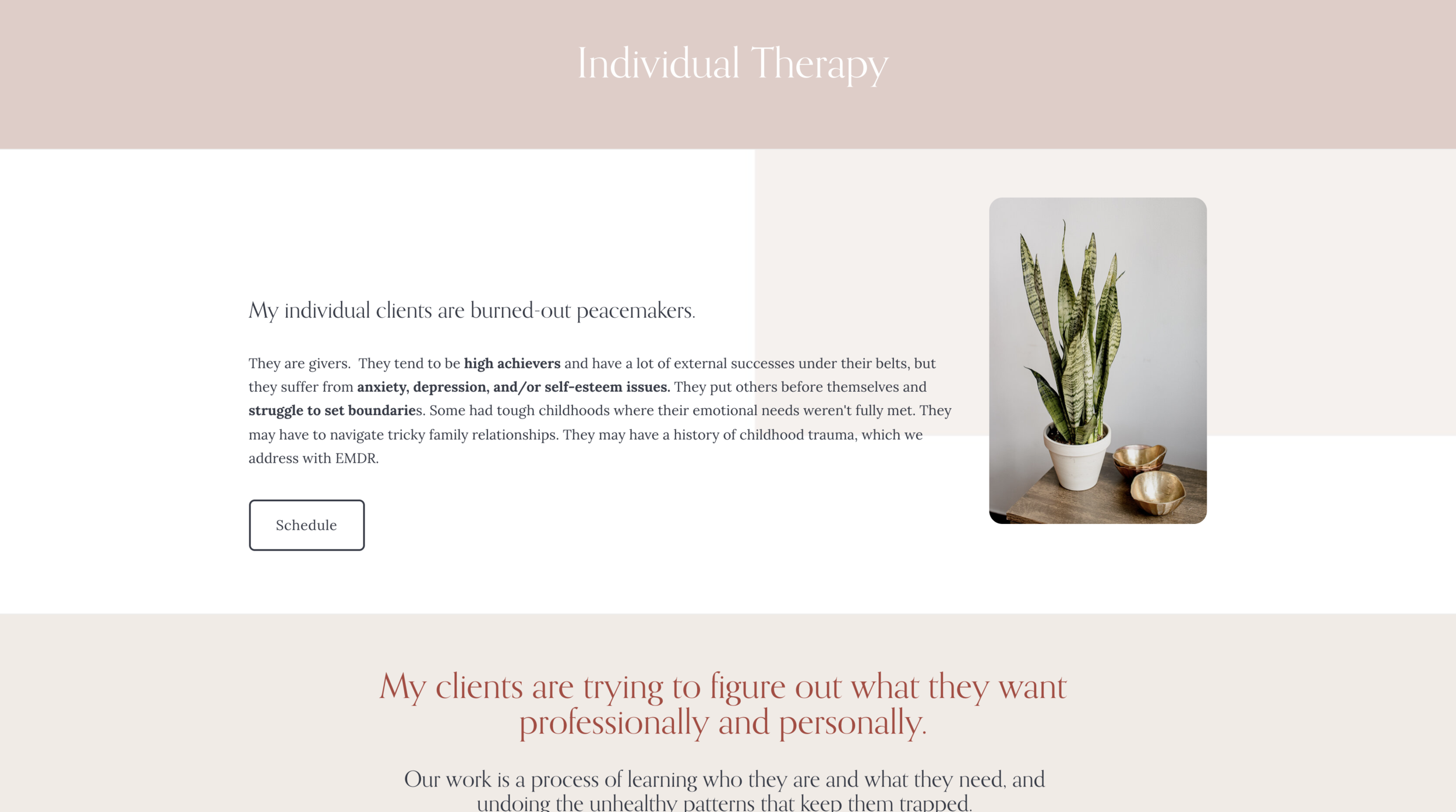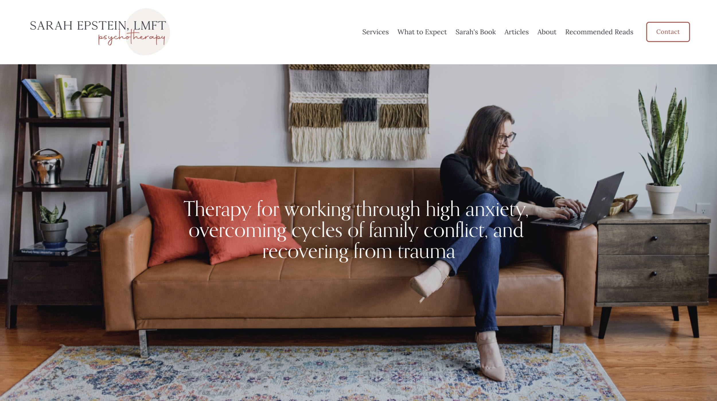 Sarah’s site is a fan fave among my other clients! Her brand website centers around her beautiful branded photography, which was done after her initial brand was completed. We also were sure to show her featured publications and more.