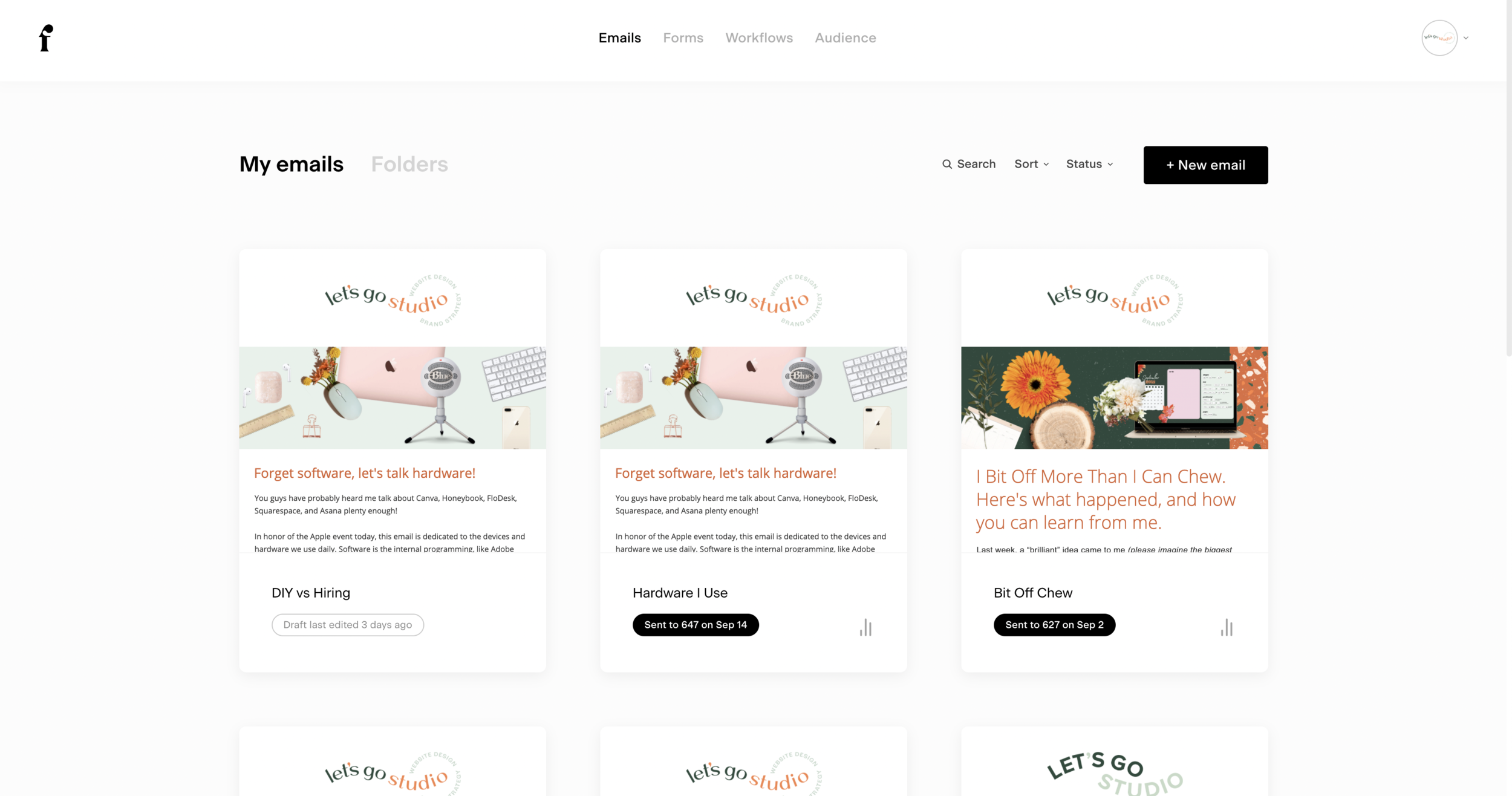 I have a lightweight, solopreneurship, which means my needs might not be as robust as a large design studio or even a studio with tons of employees. Knowing that, I simply need a newsletter platform that doesn’t add stress to my workday and allows me to quickly and beautifully send out email newsletters.