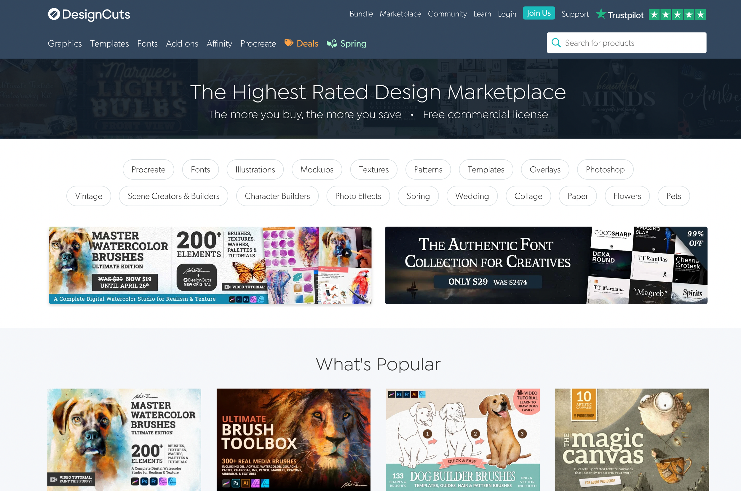 Pricing: Per design set, with graphic around $15-$30 and fonts the same
